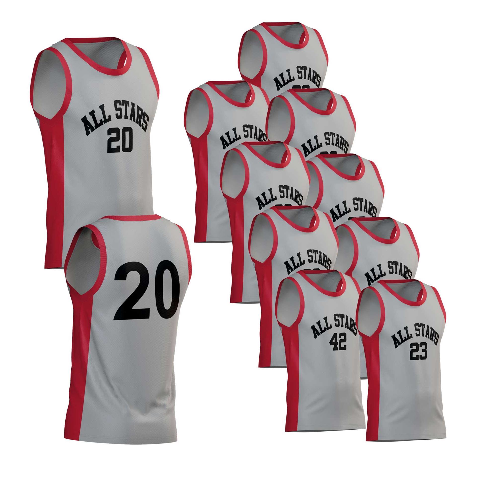 Basketball jersey special package. This special price applies to purchases of 10 jersey that will be custom made to the two colors of your choice and personalized with team name and player numbers. Please use the CONTACT US link below to let us know your color choices and we provide pre-production drawings via email for your approval before we begin production. Satisfaction is guaranteed!