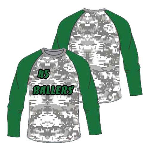 Our popular CAMOUFLAGE Shooting Shirt - features fully dye sublimated printing. The shirt fabric colors, featured design and all chosen personalization are simultaneously dye sublimated onto the moisture wicking fabric, which means no cracking, peeling or tearing in your design or player numbers. The minimum order quantity is 10 sets; the listed price includes—at no additional cost—all desired personalization / decoration along with free delivery to Continental US addresses. Our fabric is made with polyester micro fiber and you have the choice of fabric configuration and weight. We carry full range of sizes for adults and children.
